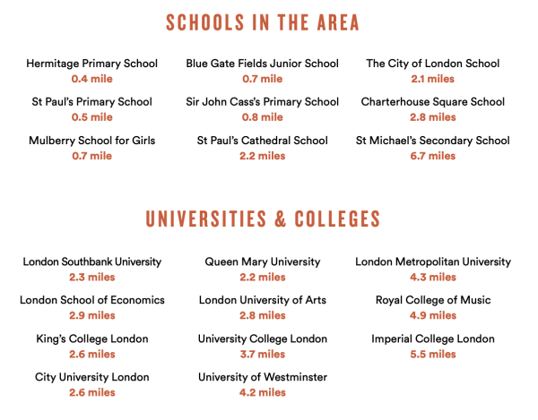 伦敦码头(London Dock)同样也是深受家长们的欢迎,小区规划建立一所中学,附近也有很多伦敦顶级的中学例如伦敦金融城男校和女校,距离全英排名前十的各大高校也仅半小时车程,为孩子教育提供从小学到大学一步到位的整个学业。