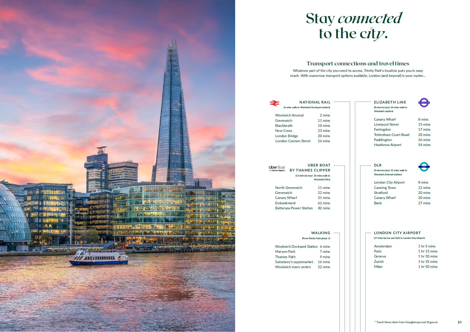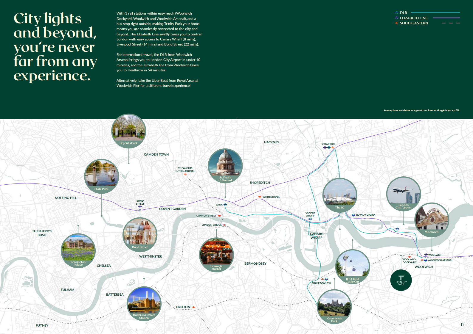 - 伊丽莎白线(Elizabeth Line):从项目出发,乘坐公交车 8 分钟或步行 24 分钟可抵达 Woolwich 站,搭乘伊丽莎白线,8 分钟直达金融中心金丝雀码头,15 分钟到利物浦街,17 分钟至法林顿,20 分钟达托特纳姆法院路,26 分钟到帕丁顿,54 分钟即可抵达希思罗机场,轻松满足居民通勤、购物以及国际出行的需求。