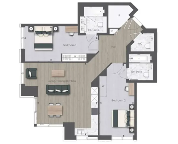 ■ 售价:720,000 – 2,645,000英镑 ■ 类型:1房 – 3房豪华公寓 ■ 室内面积:55.6 – 156平方米(596– 1678平方英尺) ■ 家具:选配(3,600镑 – 8,800镑) ■ 产权:999年租赁产权 ■ 完工:2025年第二季度完工