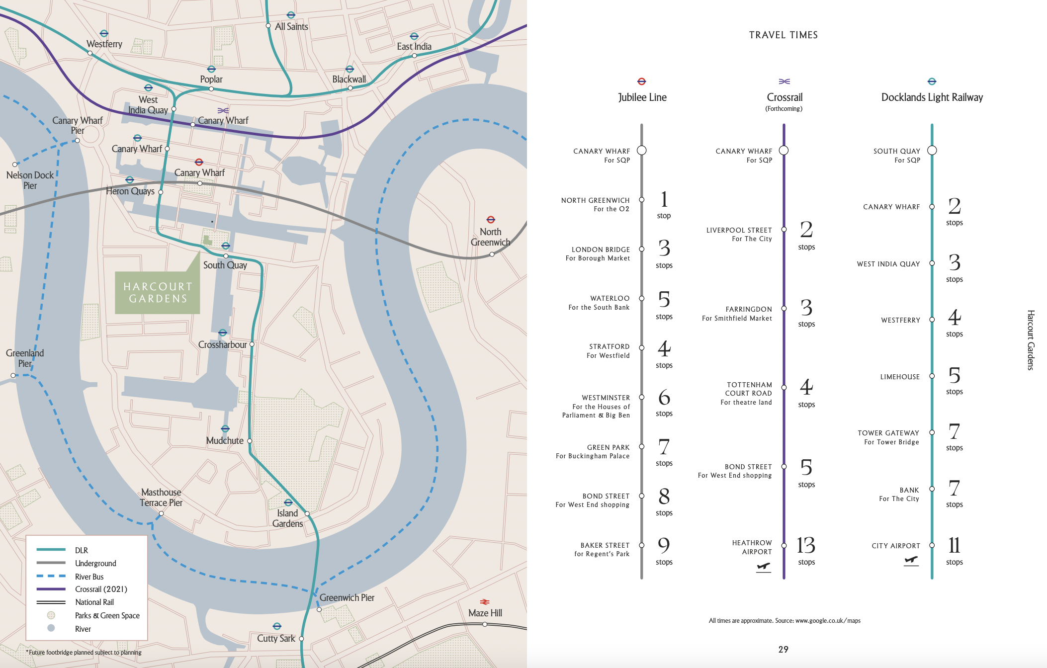 金丝雀码头享受DLR轻轨、Jubilee地铁线、横贯铁路伊丽莎白线的三重交通便利,SQP距离全新的伊丽莎白线仅咫尺之遥,通过极大地改善交通联系、缩短旅程时间、提供额外的容量,并通过宽敞的新车站和步行列车改变整个首都的旅行。从SQP的金丝雀码头站出发,前往伦敦一些最受欢迎的目的地的旅行时间被大幅缩短。