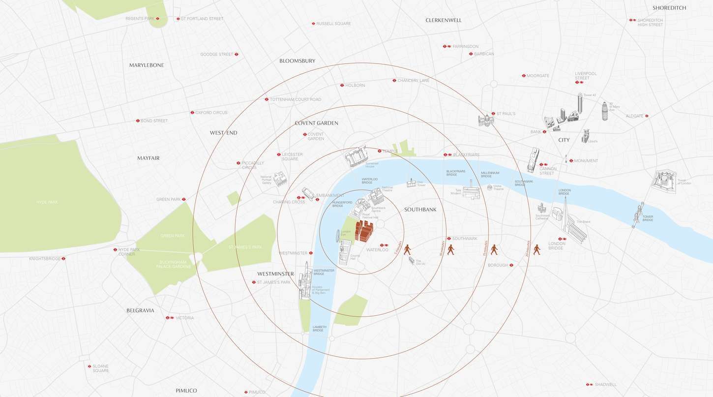 泰晤士河南岸拥有众多生活、艺术和休闲设施,已经形成了成熟的南岸生活圈。项目原址是著名的英国艺术节(The Festival of Britain)举办地,这一拥有70年历史的艺术盛事重新定义了南岸的艺术风潮,并至今仍深深影响着整个南岸地区的文化氛围。凭借着英国国家剧院、英国电影协会、泰特现代美术馆、莎士比亚环球剧场、伦敦眼等文化中心和地标建筑,南岸已成为伦敦最具活力的地方之一,还被《TimeOut 2021》评为世界上第三“最酷的街道”。