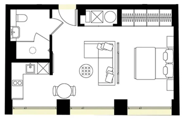 ■ 总面积:543平方英尺/50.4平方米 (含阳台)