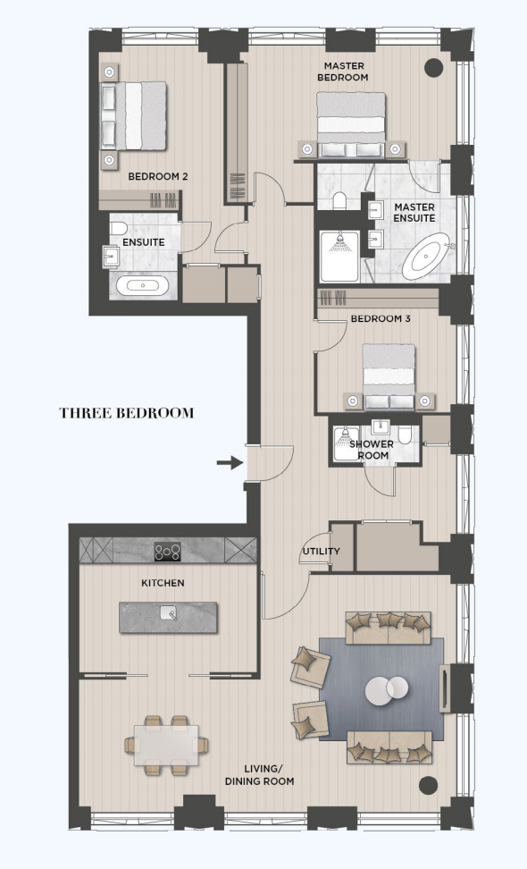 ■ 售价:3,355,000英镑起 ■ 类型:2房 - 4房豪华公寓 ■ 室内面积:101-252平方米(1087 - 2713平方英尺) ■ 产权:999年租赁产权 ■ 完工:已完工